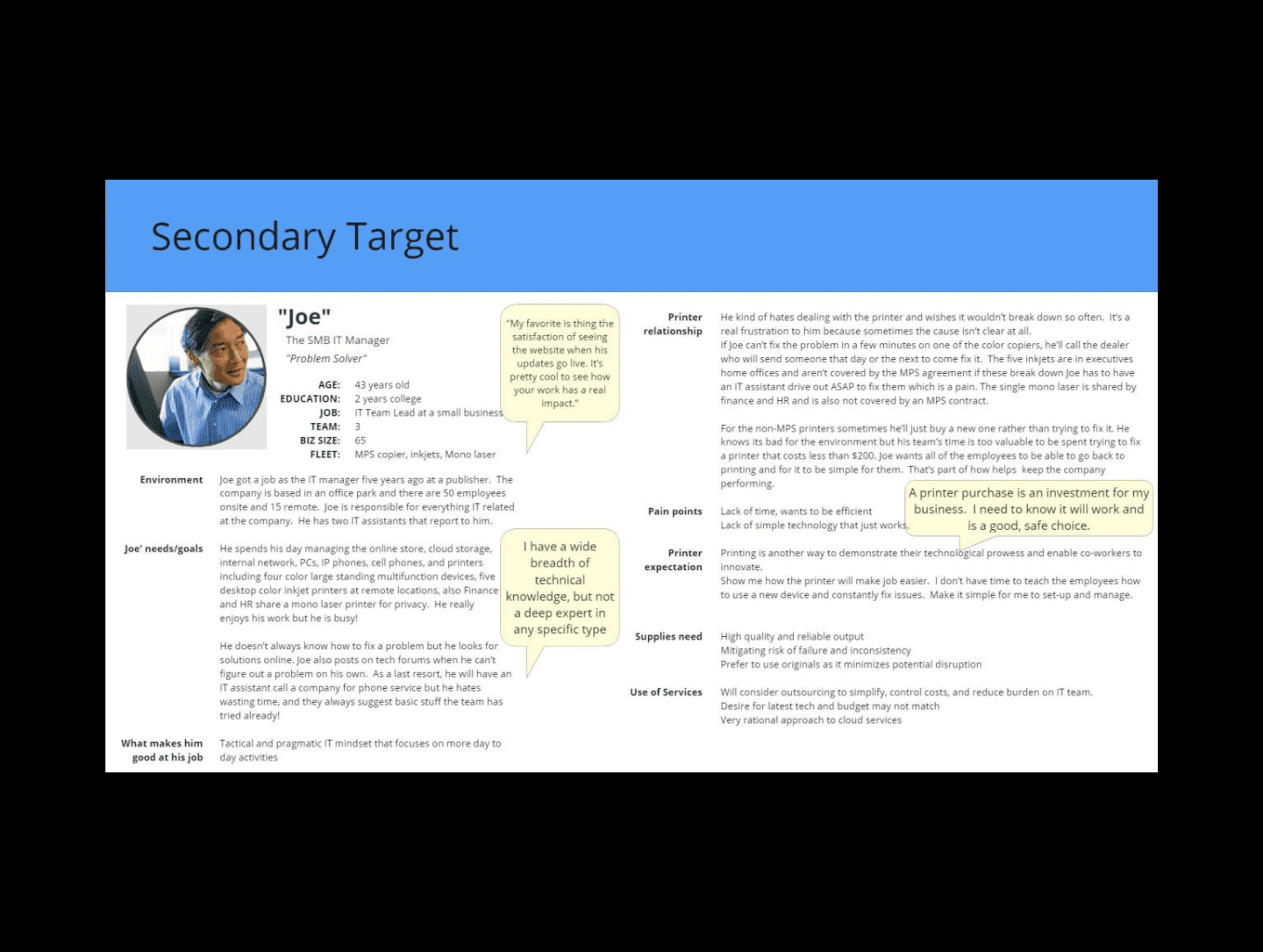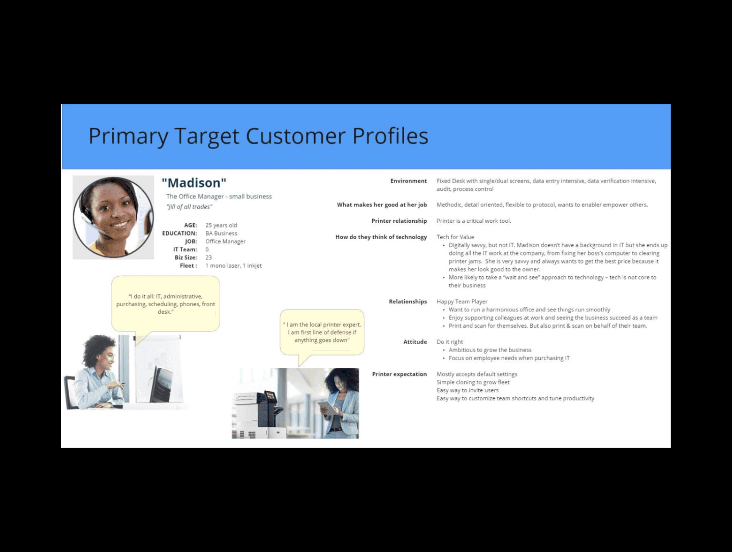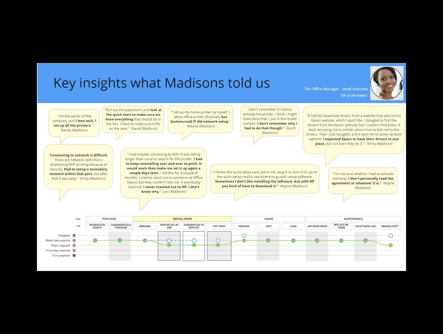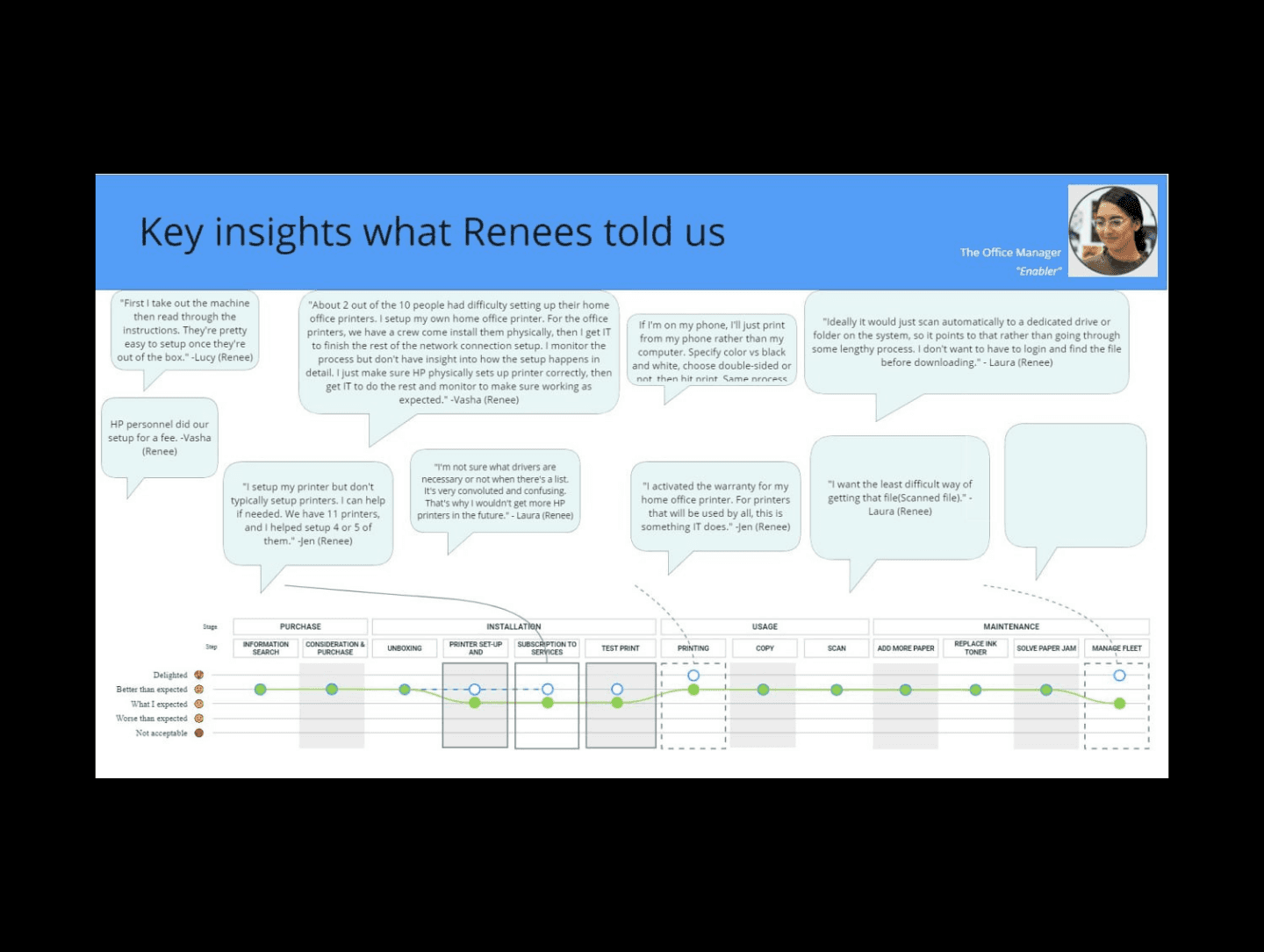 Guided a team of designers on the production of a video aimed at elucidating the Out-of-Box Experience for printer portfolio to the internal stakeholders